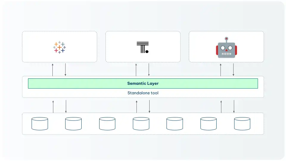 A standalone tool that all consumers connect to — is significantly better. Every tool reads from the same source of truth. But it adds an extra layer of infrastructure to maintain and can create integration complexity as the number of consumers grows.