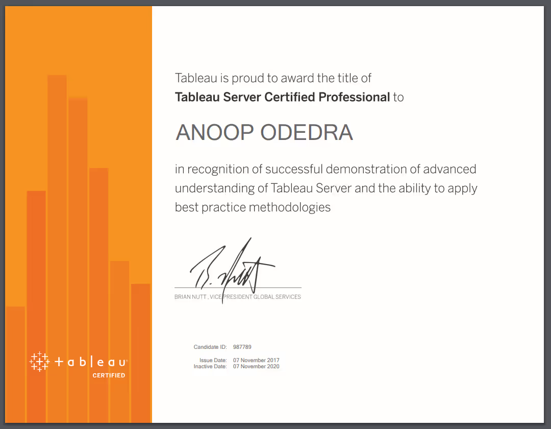 - Tableau Certified Professional