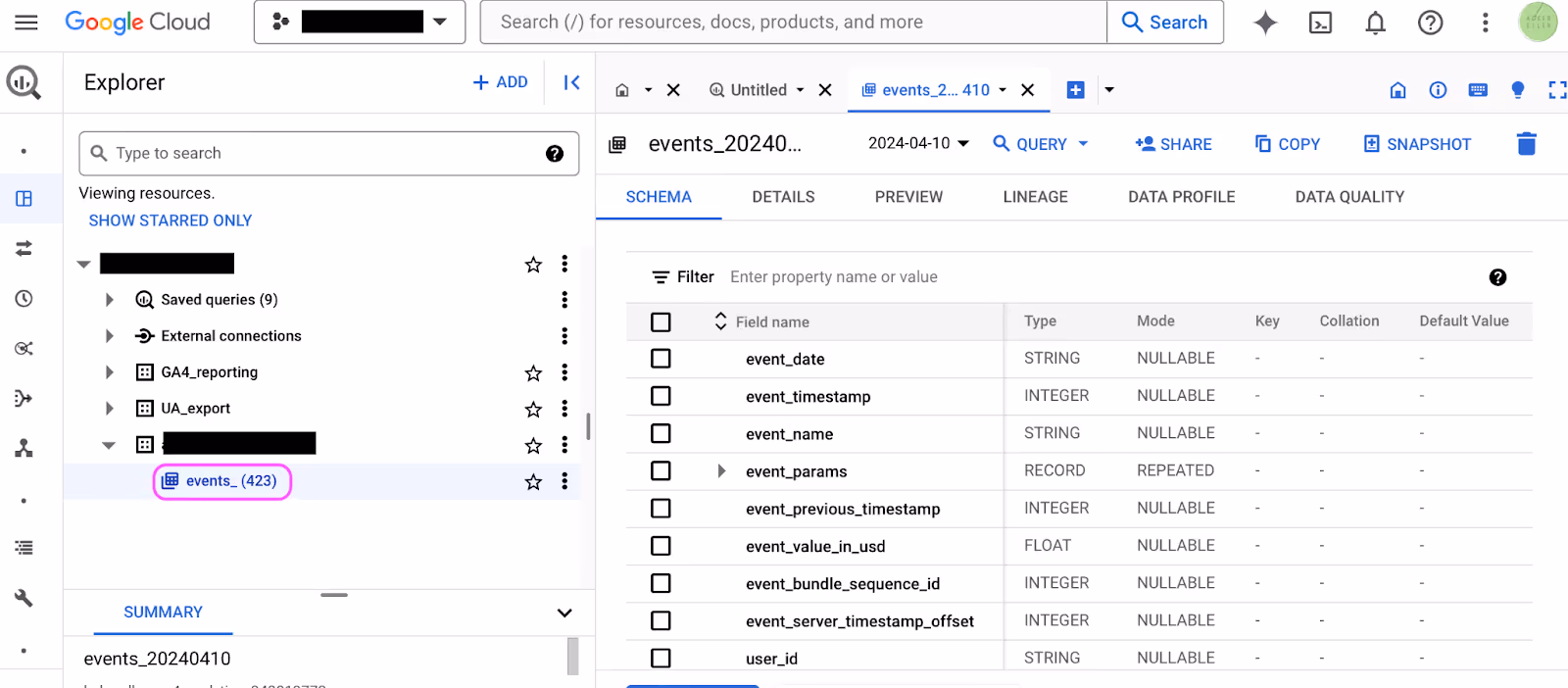 If all of the above was successful you should be able to navigate to the BigQuery Explorer and start seeing one “event_” table be exported for each day that the stream has been active.