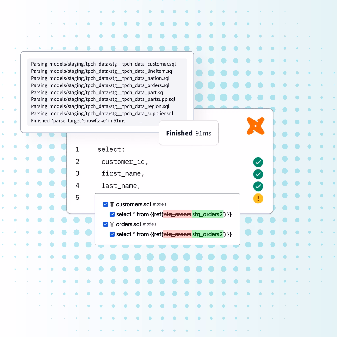 dbt helps data teams to produce and ship trusted data sets faster with up to 30x faster performance, reduced costs, and end-to-end governance—all from within your modern data stack infrastructure.